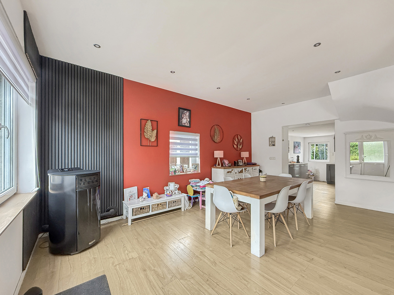 Wood Immo presents: This family home with 4 bedrooms and 3 garages, all on a plot of 5a25ca, will surprise you with its beautiful volumes. This property is ideal for a first purchase or for future families. It comprises: dining room (+/- 20m2), fitted kitchen, living room (+/- 19m2), study, 3 garages (separate), laundry room, separate WC, night hall, 3 bedrooms (+/- 15-14-12m2), bathroom, attic converted into fourth bedroom (+/- 25m2). This house also offers a lovely north-west-facing terrace and 4-5 parking spaces. PEB class D (306 kWh/m2) - UC 20241031005976. Features: double glazing, photovoltaic panels, pellet stove, etc. Close to main roads and all amenities. Offer from €350,000 subject to acceptance by owners. Full description available on request, visit without delay! Information and/or visits on 0497 73 02 28 or via our website www.woodimmo.com. If you have a property to sell or rent, we'll carry out your valuation free of charge and without obligation. Just contact us!