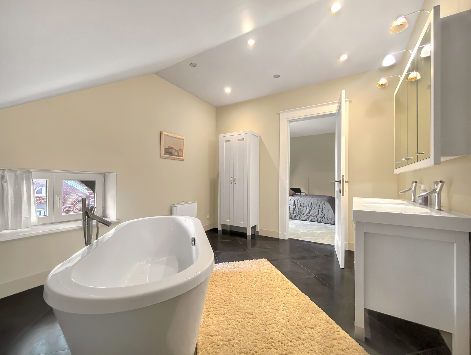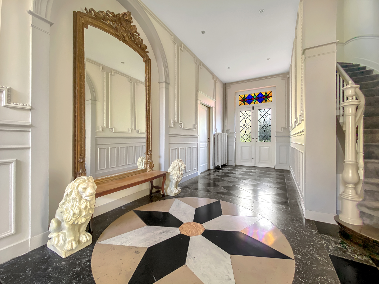 Dit karaktervolle pand met ongeveer 698 m² woonoppervlak combineert op harmonieuze wijze het cachet van het verleden met hedendaagse elegantie. Het pand is verdeeld in twee delen: - Het huis bestaat uit: inkomhal, ontvangstruimte, keuken + ontbijthoek, bijkeuken, 2 grote woon/eetkamers, barruimte en 2 WC's. De twee bovenverdiepingen herbergen 7 slaapkamers (waarvan 2 met en-suite doucheruimtes), 2 extra doucheruimtes, kleedkamer, 2 aparte wc's en een opslagzolder. - De conciërgewoning, een studio van 95 m² met eigen ingang, biedt een ruime open accommodatie bestaande uit een keuken, woonkamer met mezzanine, 1 slaapkamer, doucheruimte en apart toilet. Dit pand biedt een breed scala aan verbouwingsmogelijkheden, geschikt voor een verscheidenheid aan projecten, waaronder een grote gezinswoning, gastenverblijf, gegroepeerd woonproject of intergenerationele woning, evenals professioneel gebruik. Het zou ook geschikt kunnen zijn voor een project met gemengd gebruik, zoals een restaurant of chambres d'hôtes. Ideaal gelegen dicht bij de E42 met gemakkelijke toegang tot winkels, bussen en scholen. Bieden vanaf € 1.490.000 onder voorbehoud van aanvaarding door de eigenaren. Volledige beschrijving beschikbaar op aanvraag, bezoek nu! Informatie en/of bezichtigingen op 0497 73 02 28 of via onze website www.woodimmo.com. Als je een huis te koop of te huur hebt, kunnen we je een gratis en vrijblijvende waardebepaling geven. Neem gewoon contact met ons op!